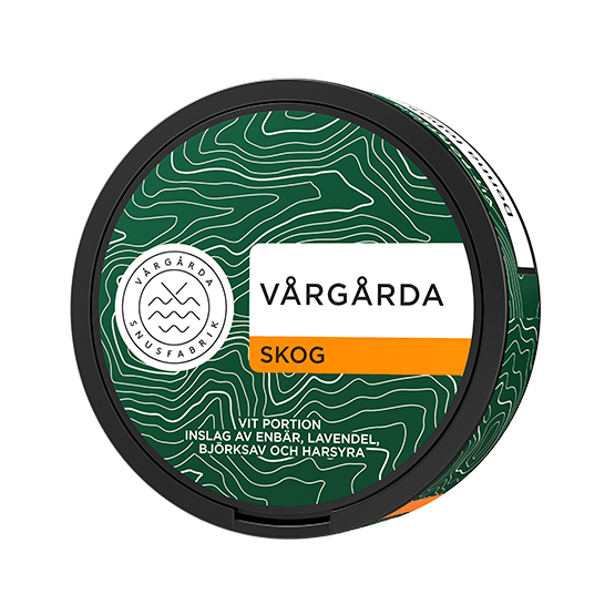 The Vårgårda Skog White Portion snus is a tobacco product with a flavor of spicy tobacco, juniper and lavender from the Swedish manufacturer Nordic Snus. Vårgårda is a series of snus in several different flavors and strengths. This white portion snus has a normal strength.